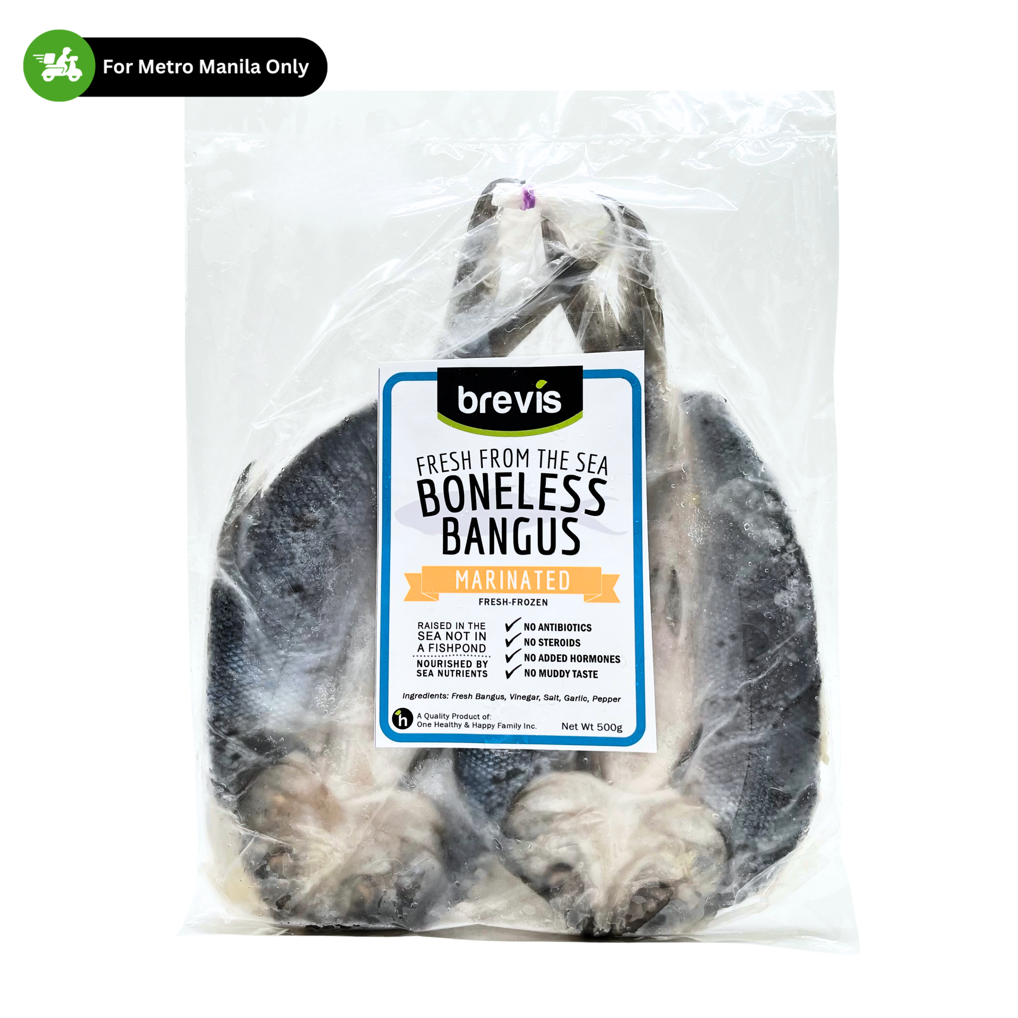 Enjoy the classic Filipino favorite made healthier and fresher. One Healthy Marinated Boneless Bangus is made with sea-raised milkfish — not from fishponds — giving you firm, flavorful meat without the muddy taste. Each piece is marinated to perfection using only natural ingredients for that home-style savory goodness.