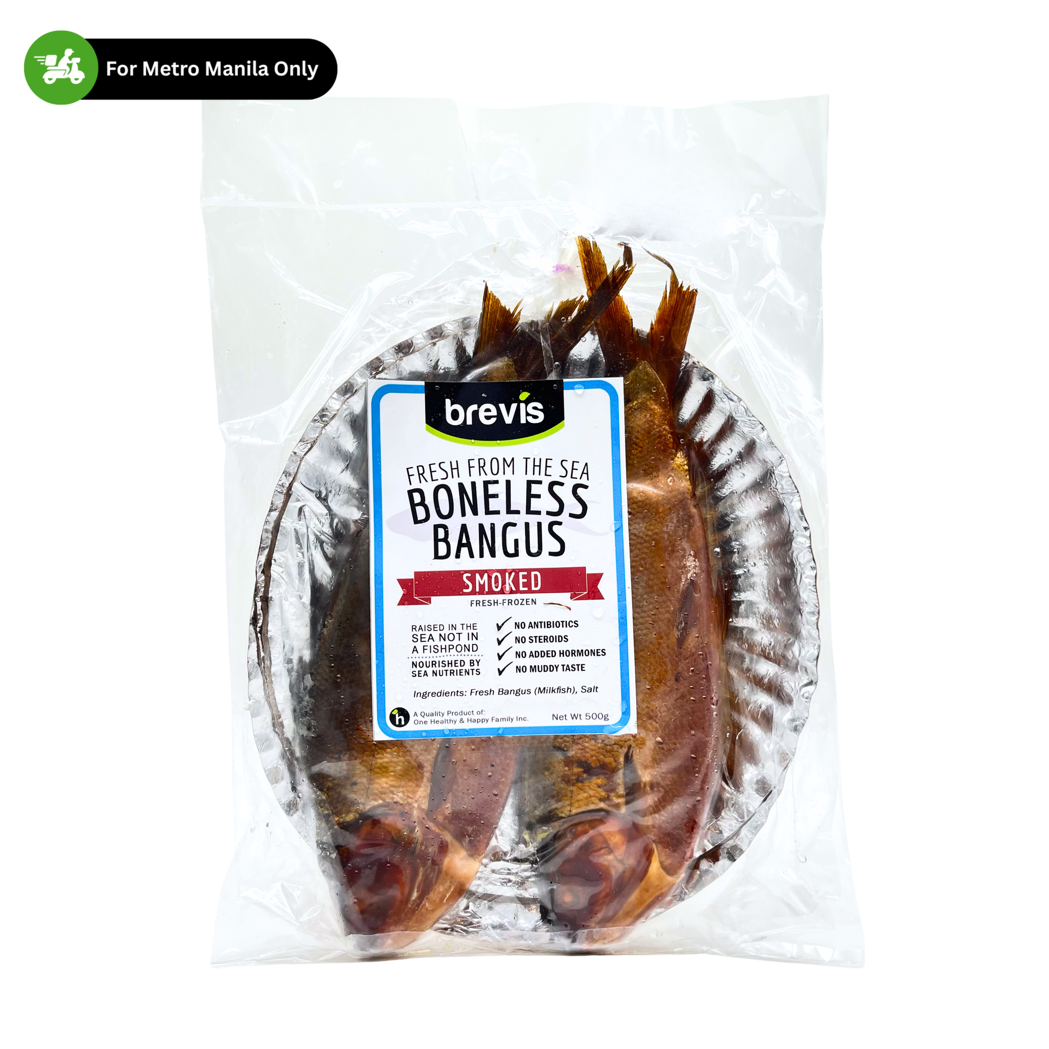Experience the rich, smoky flavor of One Healthy Smoked Boneless Bangus, made only from sea-raised milkfish — never from fishponds. Our bangus are nurtured in their natural ocean environment, giving them firm, flavorful meat without the muddy taste. Lightly cured with salt and smoked to perfection.