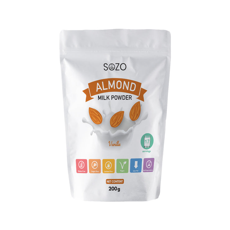 Lactose intolerant or not, SOZO Almond Milk Powder is the answer to your guilt-free milky cravings! Kissed with a hint of vanilla, it’s delicious over cereal, mixed with coffee, added to your favorite sweet recipes or just mixed with water.