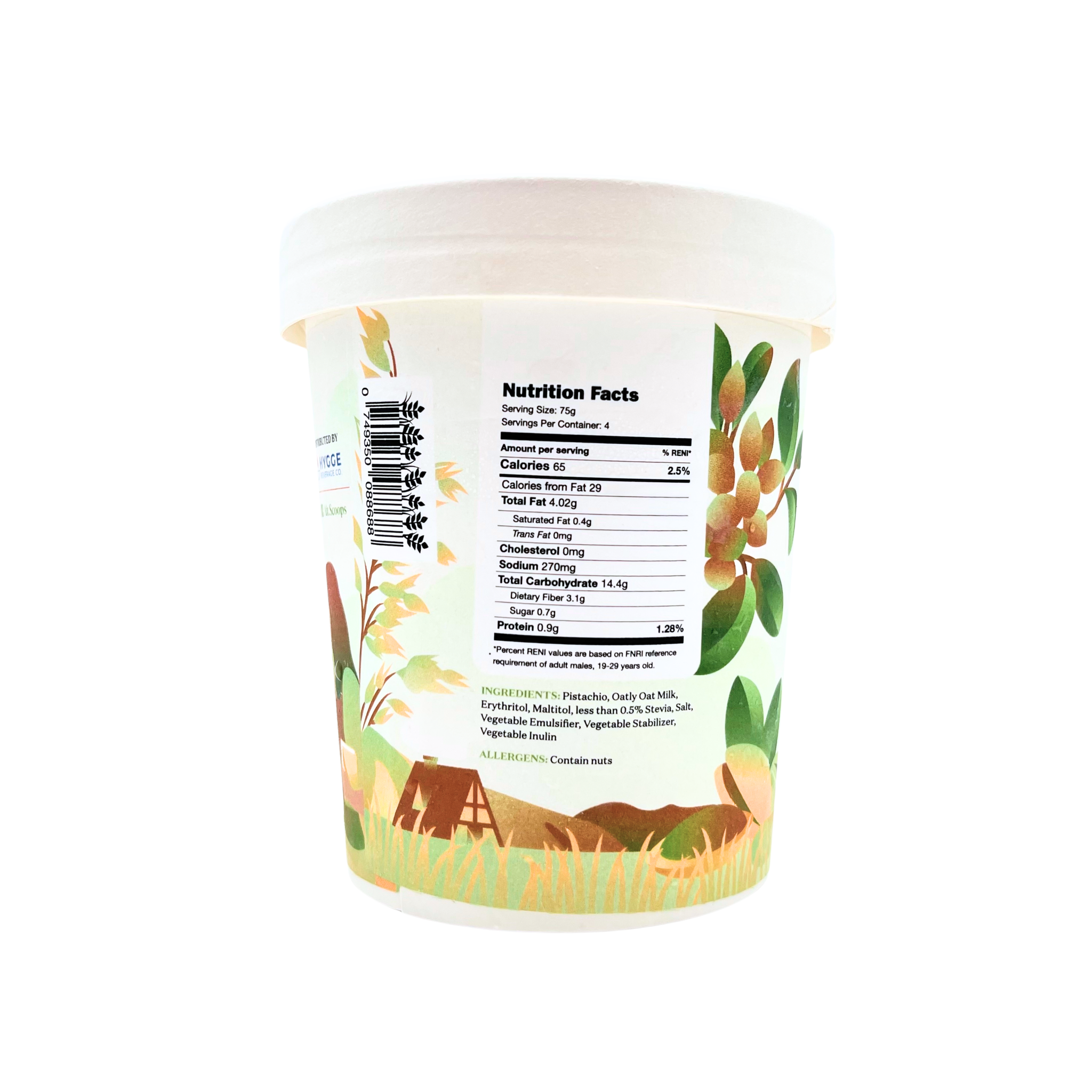 Ingredients: Pistachio, Oatly oat milk, erythritol, less than 0.5% stevia, salt, vegetable emulsifier, vegetable stabilizers, vegetable inulin