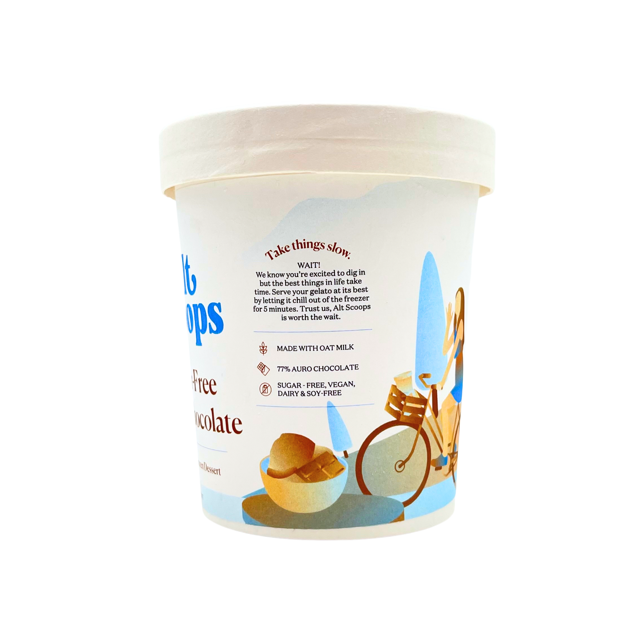 Dive into decadence with Alt Scoops Sugar-Free Dark Chocolate Gelato, made with the finest 77% Auro Chocolate and creamy Oatly oat milk. Each scoop delivers deep, rich cocoa flavor balanced with velvety smoothness — all without a hint of sugar.