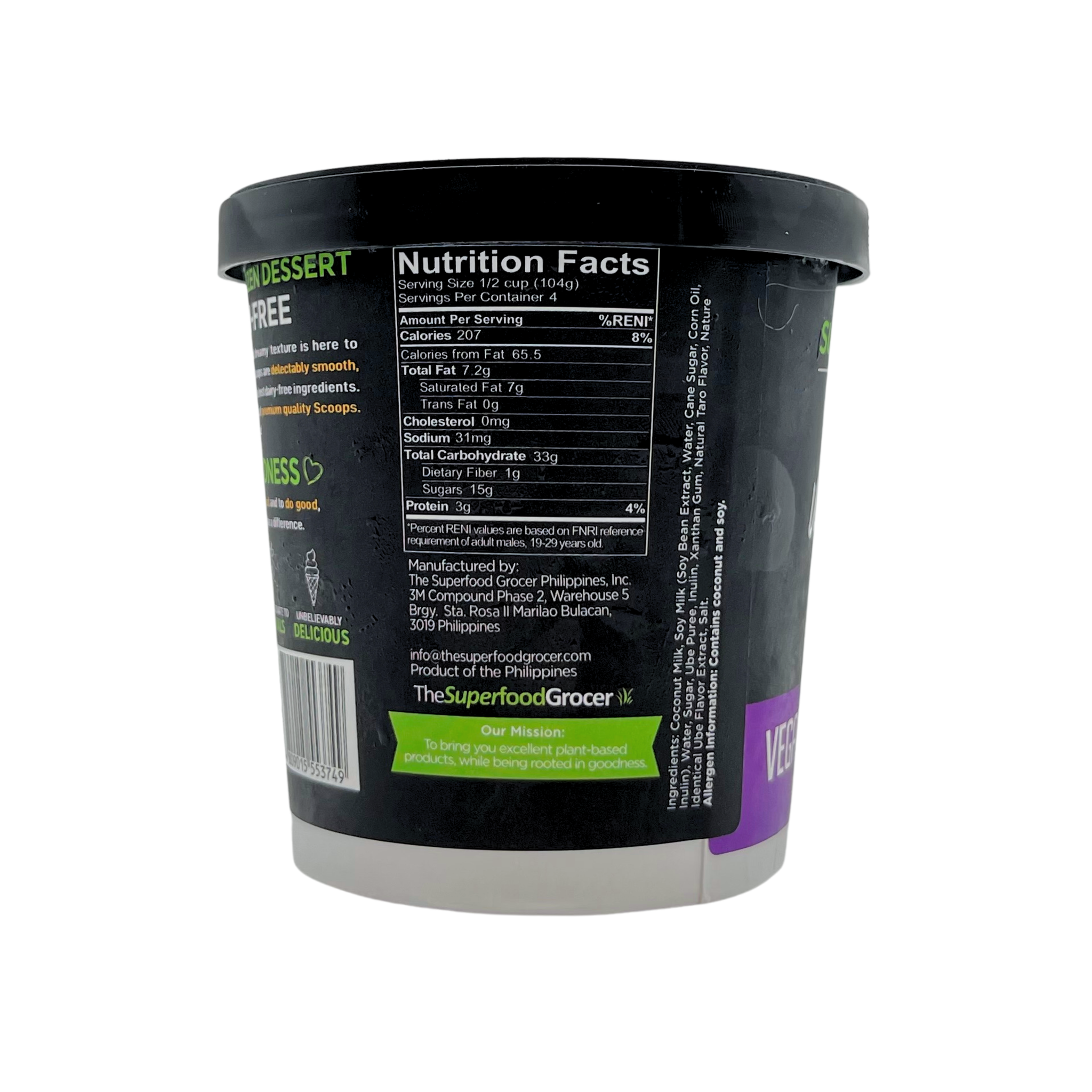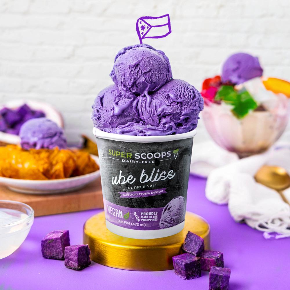 SuperScoops - Ube Bliss Vegan Ice Cream is a creamy, dairy-free treat bursting with the naturally sweet, rich flavor of ube. Made with coconut and soy milk, organic sweeteners, and all-natural ingredients, it’s 100% plant-based, vegan, and proudly supports local Filipino coconut farmers—guilt-free indulgence in every scoop.