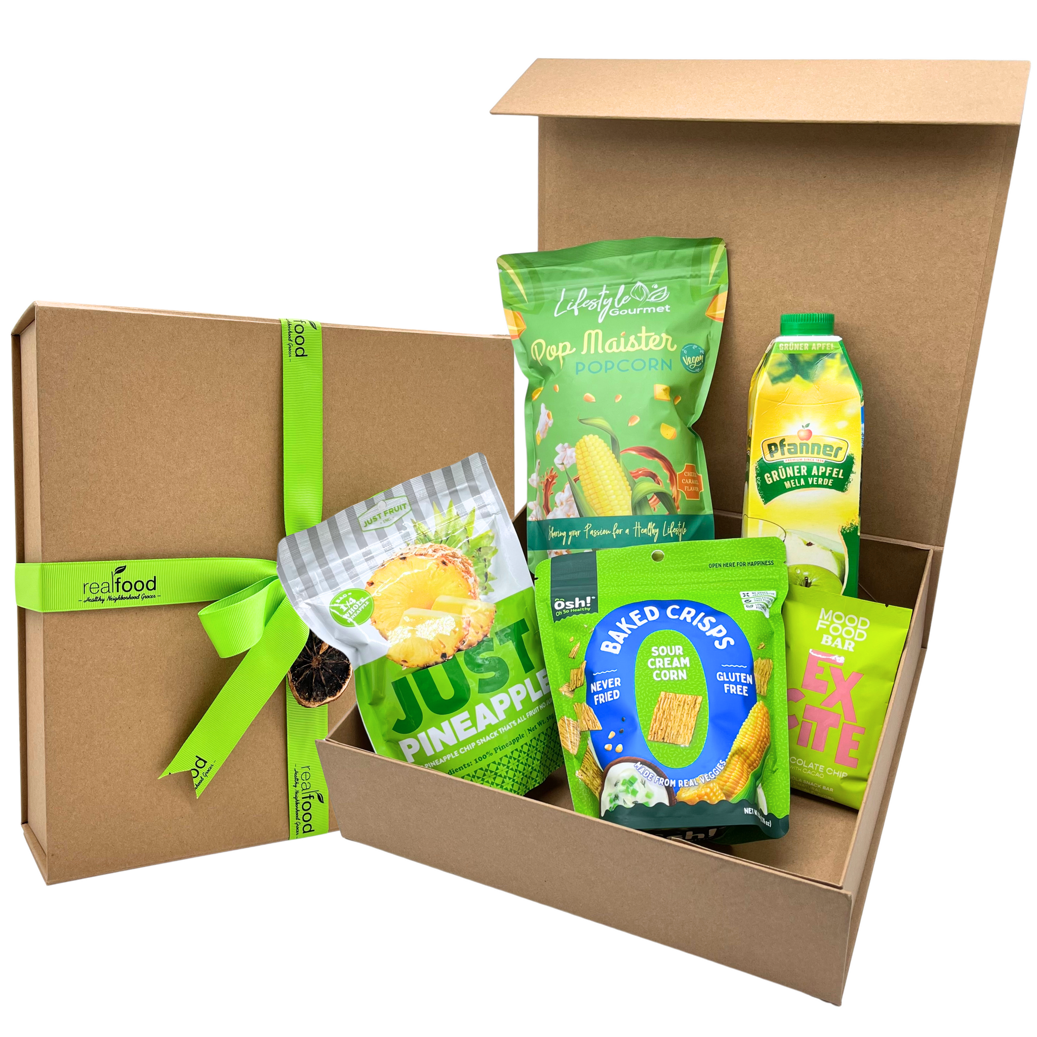 The perfect blend of festive cheer and wholesome goodness. This thoughtfully curated collection of 5 healthy color coordinated snack is designed to delight the senses while nourishing the body. Wrapped in a magnetic box, it comes with a Real Food ribbon, a card, and a dried lemon garnish.