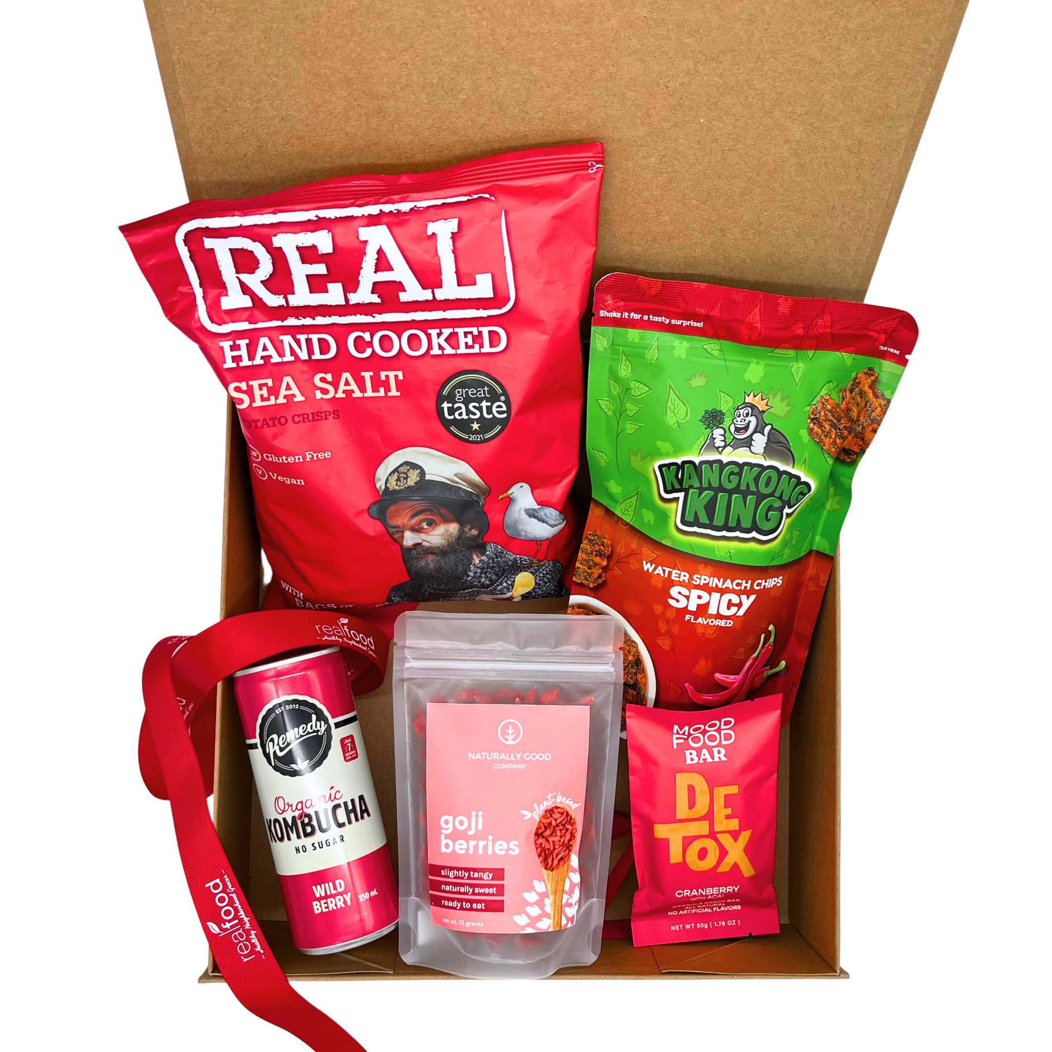 The perfect blend of festive cheer and wholesome goodness. This thoughtfully curated collection of 5 healthy color coordinated snack is designed to delight the senses while nourishing the body. Wrapped in a magnetic box, it comes with a Real Food ribbon, a card, and a dried lemon garnish.