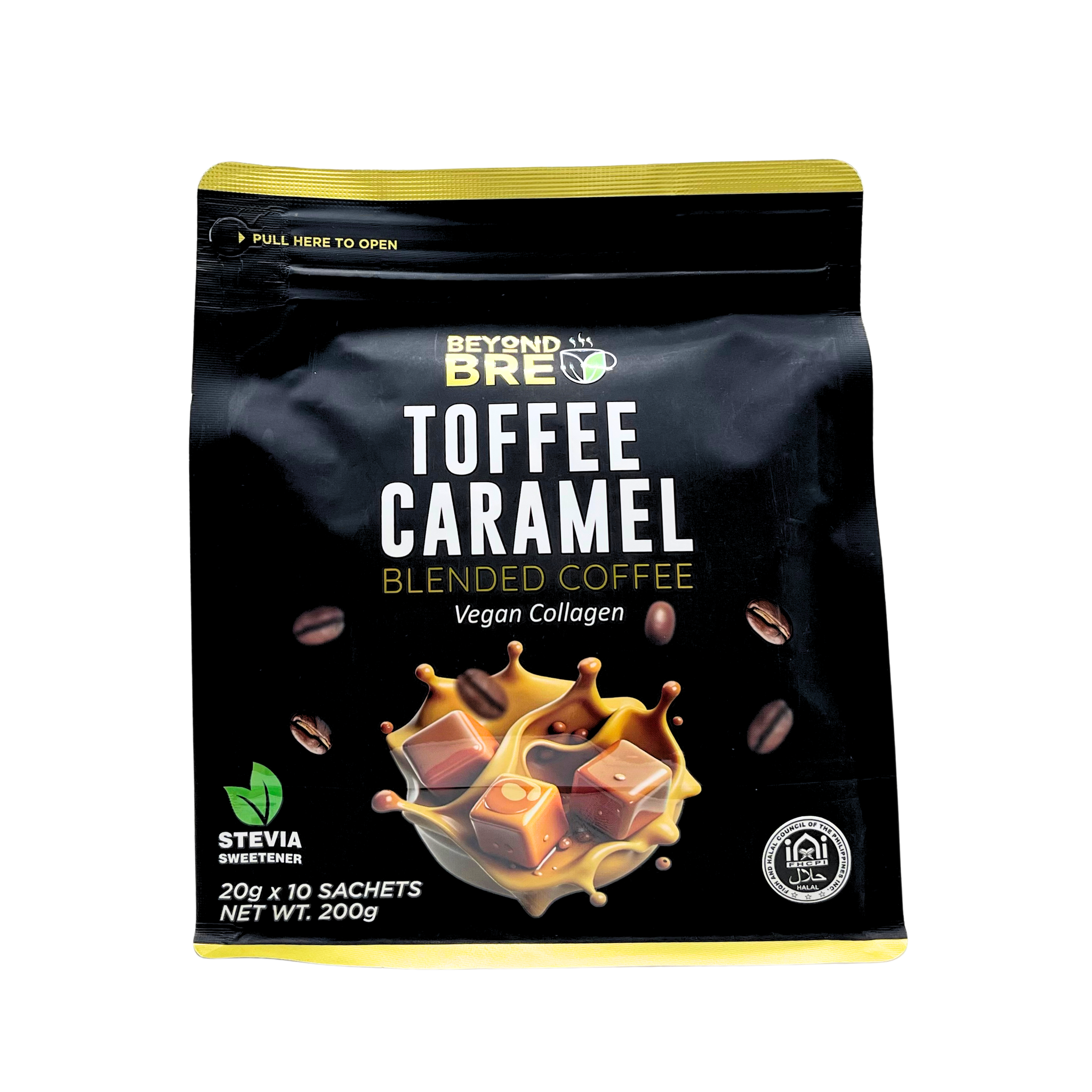 Beyond Brew – Toffee Caramel Blended Coffee combines rich coffee with smooth toffee caramel flavor, naturally sweetened with stevia and enriched with vegan collagen. Indulgent yet guilt-free, it supports skin, hair, and joint health while giving you a deliciously creamy coffee experience.