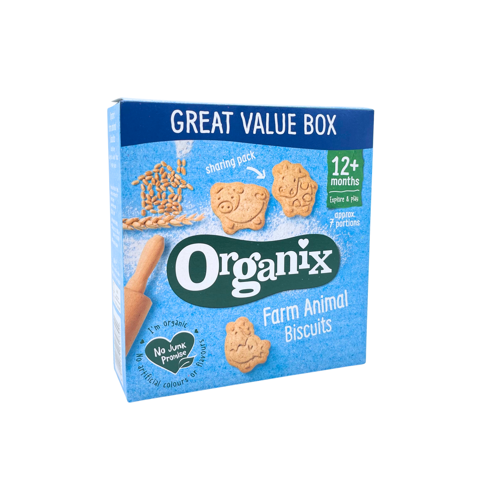 Make snack time fun and nutritious with Organix Farm Animal Biscuits. Crafted from wholegrain wheat and naturally sweetened with grape juice, these crunchy biscuits are lightly flavored with a hint of ginger for a gentle, tasty snack. Perfect for little hands, they support self-feeding and motor skill development. Suitable for vegetarians and vegans, these biscuits are free from artificial colors, flavors, and preservatives, offering a wholesome and playful treat for children.