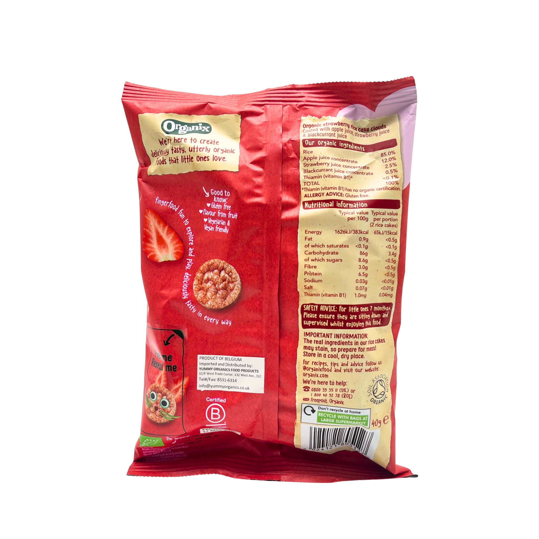 Ingredients: Rice, apple juice concentrate, strawberry juice concentrate, blackcurrant juice concentrate, thiamin (vitamin B1)