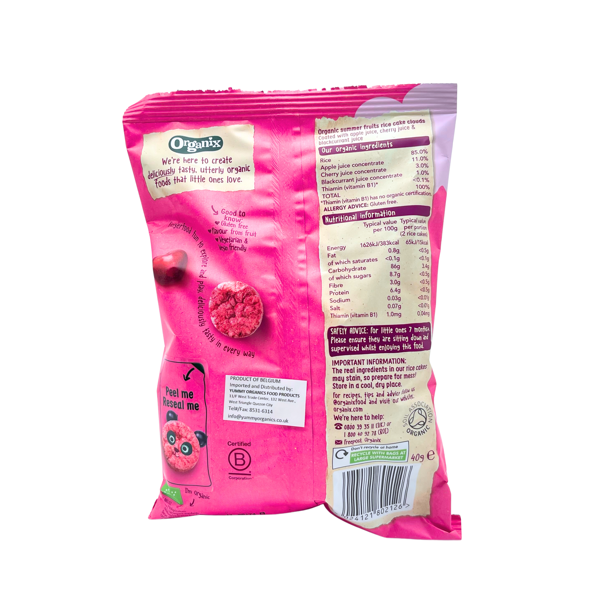 Each rice cake is gently coated with apple, cherry, and blackcurrant juice, creating a naturally sweet and fruity flavor that little taste buds will love.