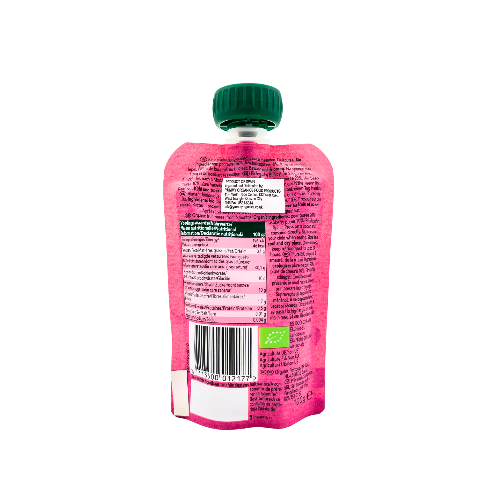 Ingredients: Pear Puree (90%), Raspberry Puree (10%)