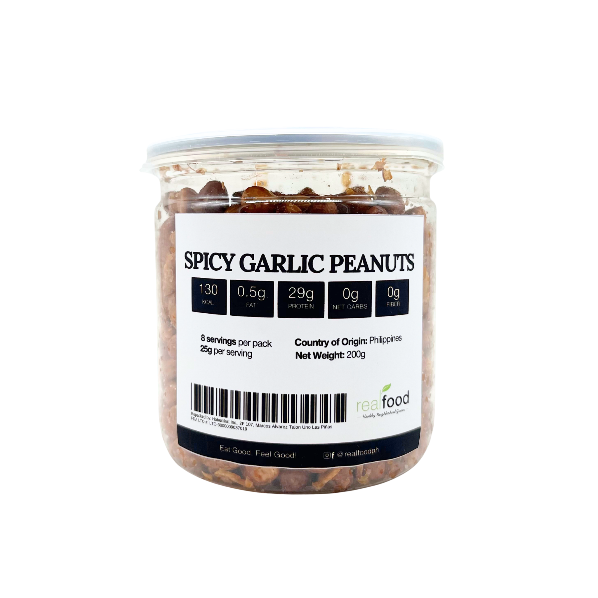 Real Food - Spicy Garlic Peanuts are crunchy roasted peanuts coated in a bold blend of garlic flavor and spicy seasoning. Locally made in the Philippines, this snack is perfect for a quick merienda or for sharing.