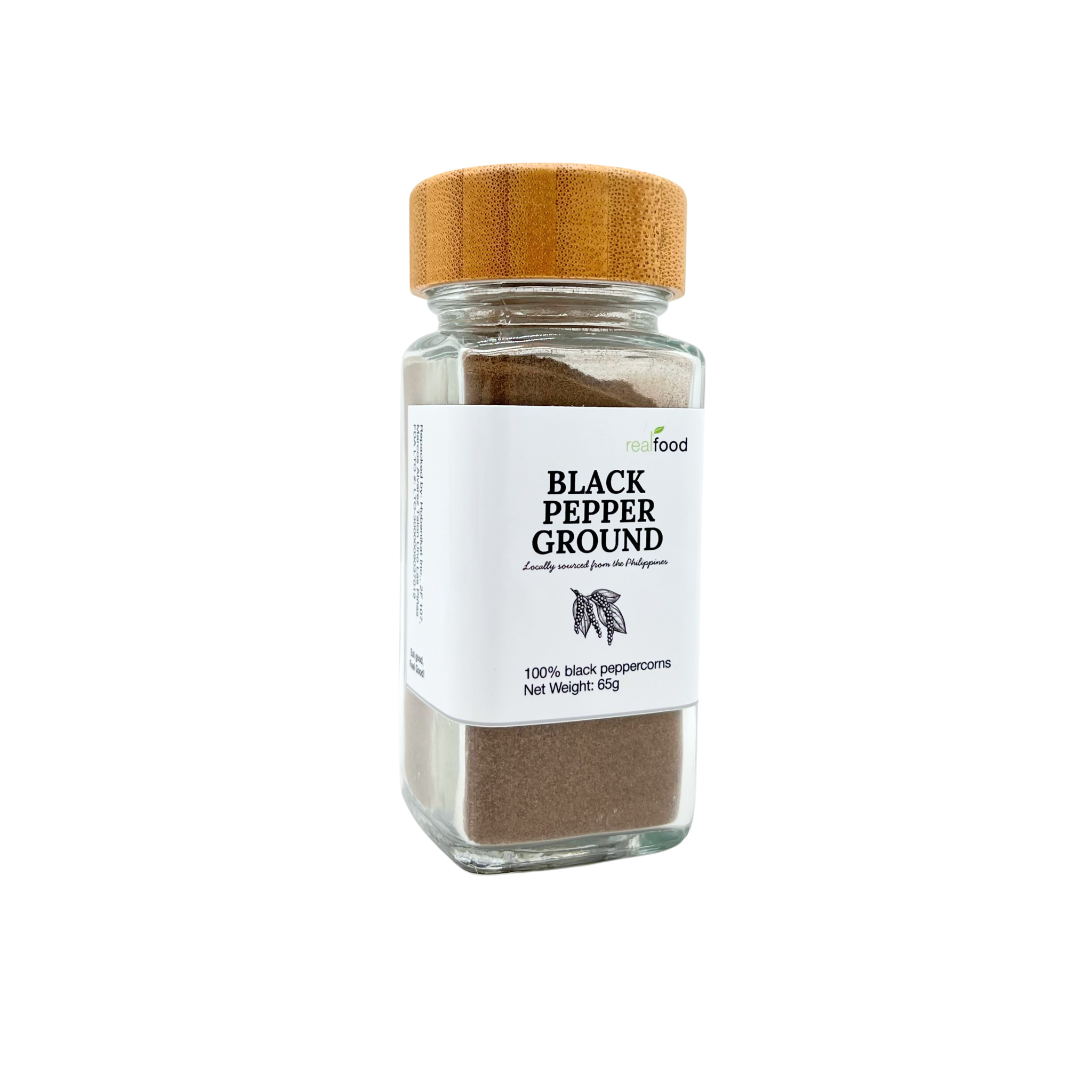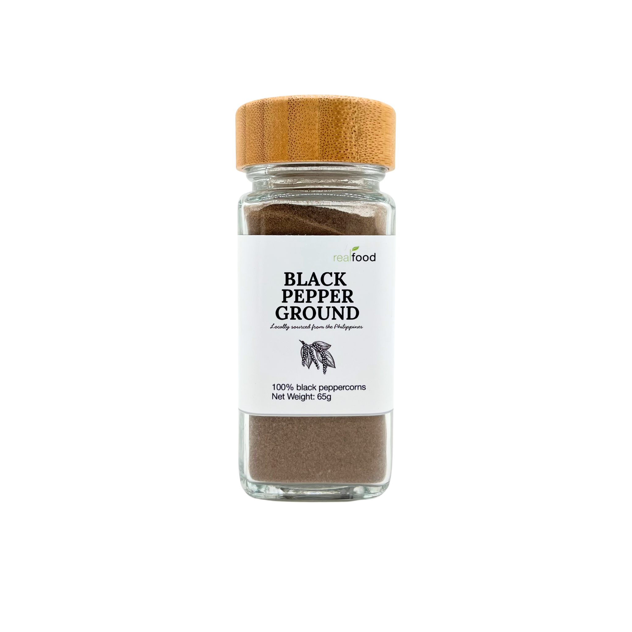 Add sharp, aromatic heat to every dish with Real Food Black Ground Pepper—a kitchen essential made from 100% pure black peppercorns, locally sourced from the Philippines. Perfect for everyday cooking and table seasoning.