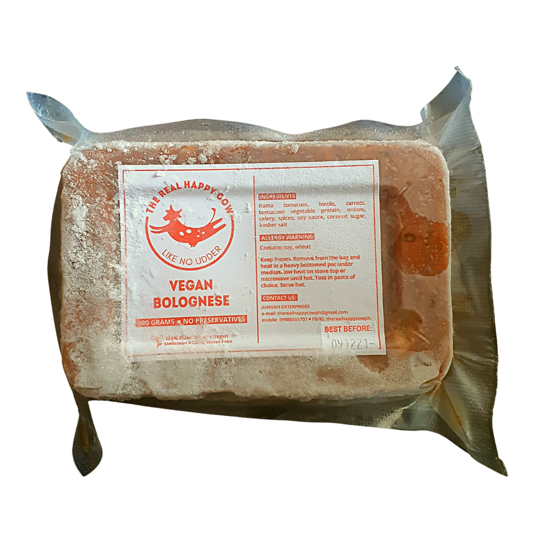 A great meaty alternative to traditional bolognese without sacrificing taste and nutrition. Made from red lentils and non-GMO texturized vegetable protein, our bolognese can feed 6-8 people when tossed in cooked 300 grams of dry spaghetti in less than 15 minutes. It is so versatile that it can be used to layer lasagnas, stuff pasta shells, dip for chips spooned on hot rice; it is exceptionally great mixed with our truffle cheese sauce, folded in cooked macaroni or stuffed in mini pie shells.