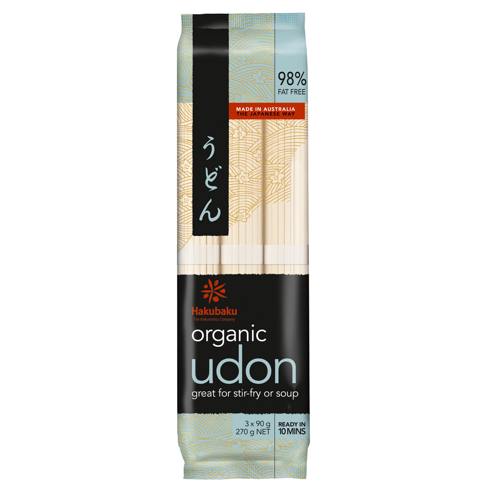 Japanese Udon noodles can be round, square or flat with a texture suitable for more hearty dishes. Although Udon noodles can be served cold, these thicker, soft, but slightly chewy, white noodles are usually served hot with various toppings, added to a hotpot dish and cooked with other ingredients, or sometimes included in a curry soup. Udon can replace soba in traditional soba recipes and some dishes even mix soba and udon noodles to give a variety of textures. This is 98% fat free, and is certified organic, Kosher, and Halal.