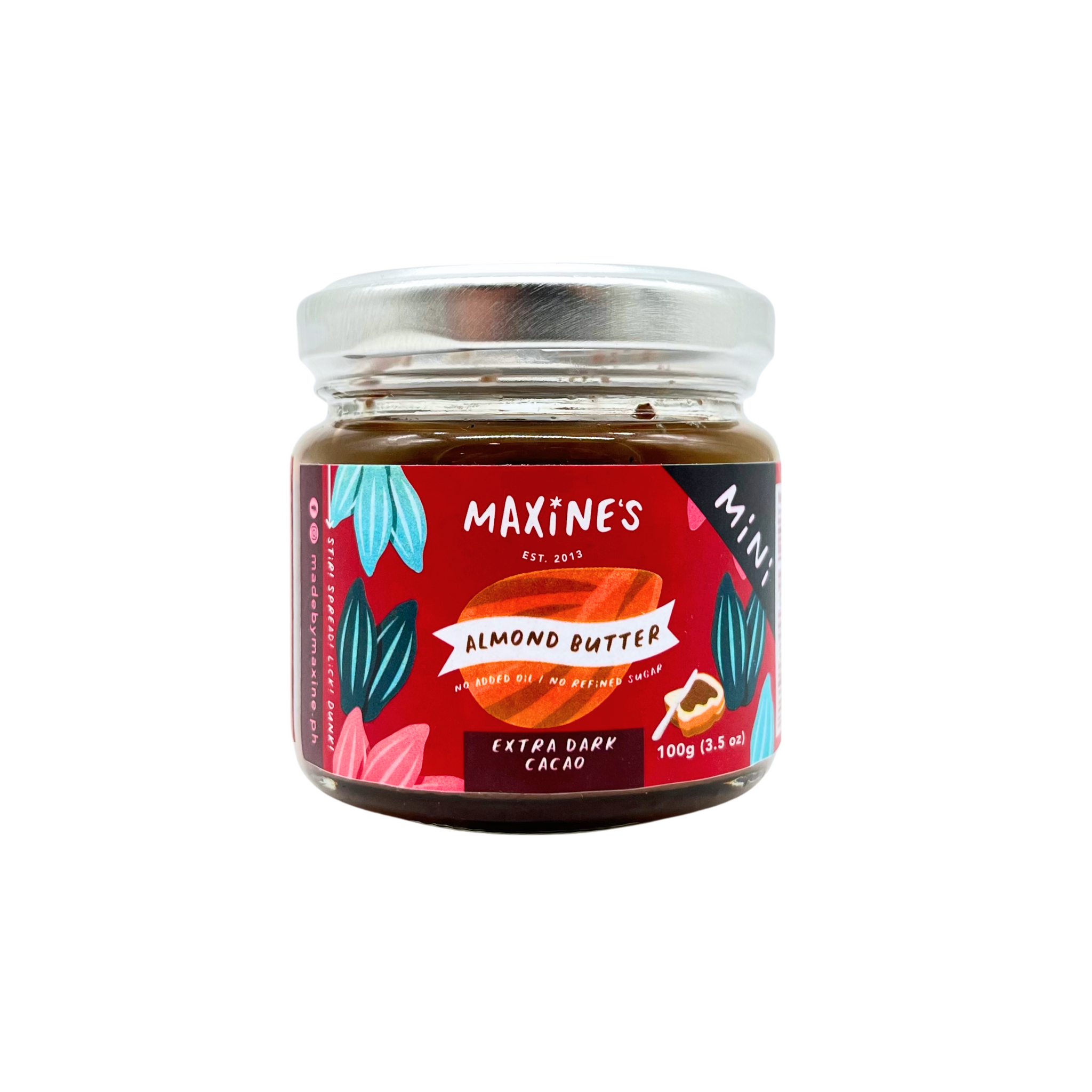 Made by Maxine’s Extra Dark Cacao Almond Butter is crafted with at least 80% almonds, blended with bold, organic single origin cacao nibs from Davao, and lightly sweetened with low glycemic, diabetic-friendly organic coconut sugar.