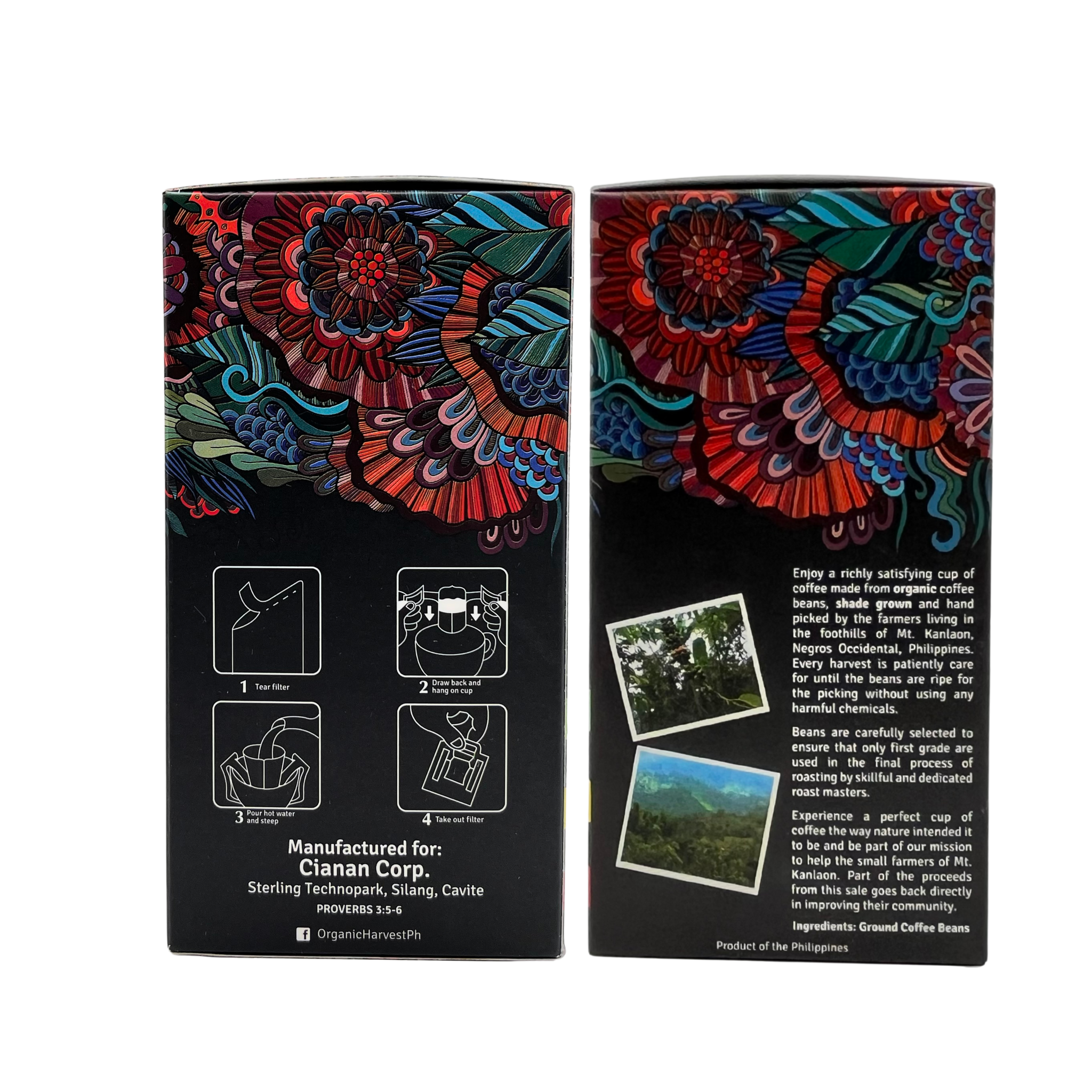 Experience the pure, earthy richness of Organic Harvest – Original Brew Coffee. An artisan instant coffee drip made from 100% organic, shade-grown beans, handpicked by farmers living in the foothills of Mt. Kanlaon. Each bean is a reflection of the land's natural bounty and the deep-rooted passion of the local communities who grow them. The result is a cup that’s aromatic, bold, and deeply energizing—perfect for a satisfying espresso experience, anytime, anywhere.