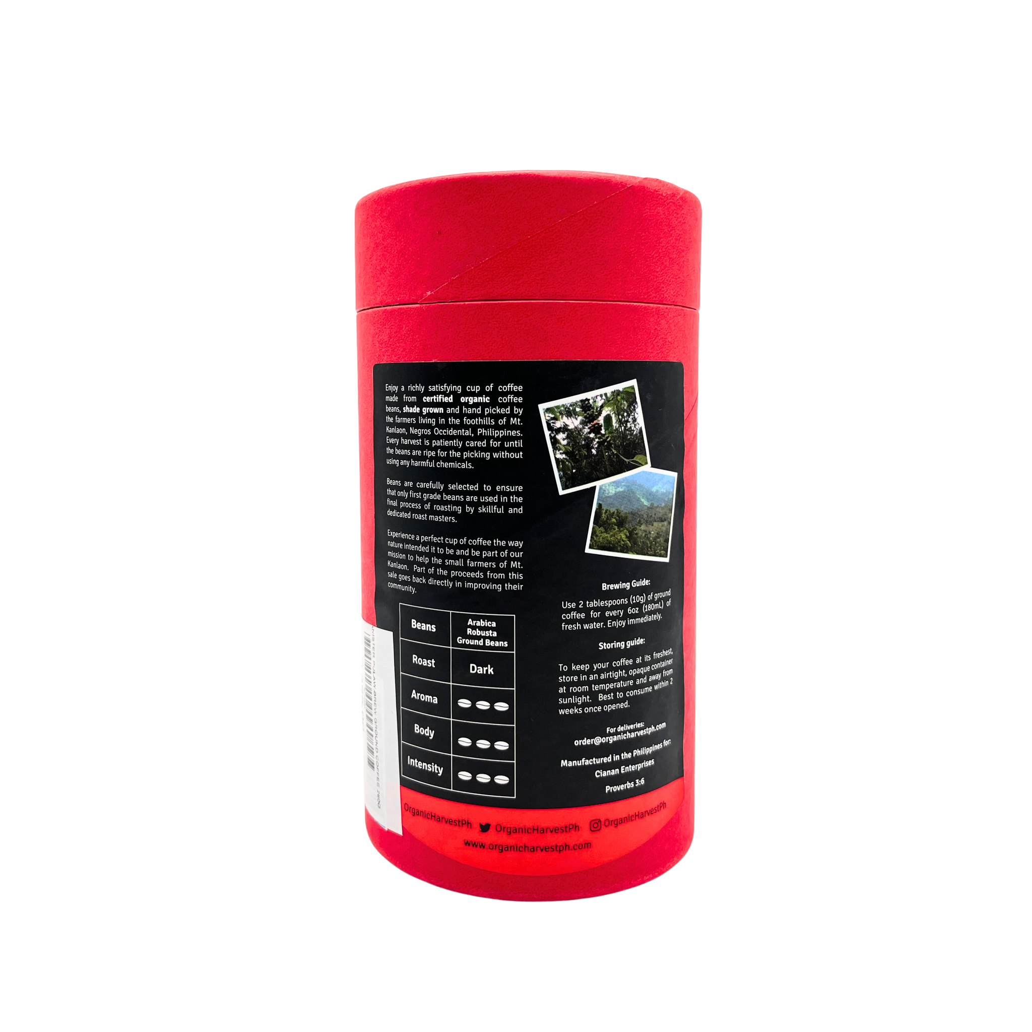 Ingredients: Certified Organic Arabica Robusta Ground Beans