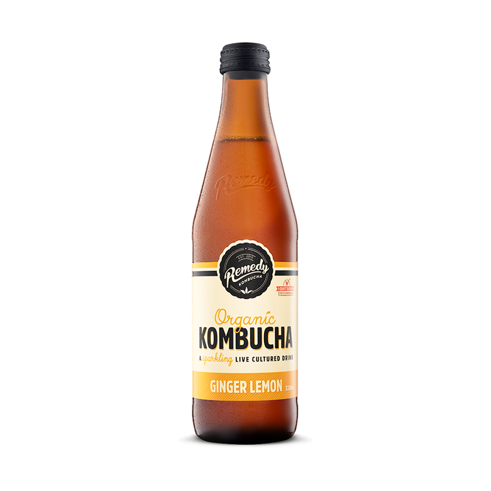 Remedy Ginger Lemon Kombucha—a bold, guilt-free take on your favorite ginger beer. It’s hot and sour, fiery and tangy, packed with real ginger warmth and a zesty citrus spark from fresh lemon.