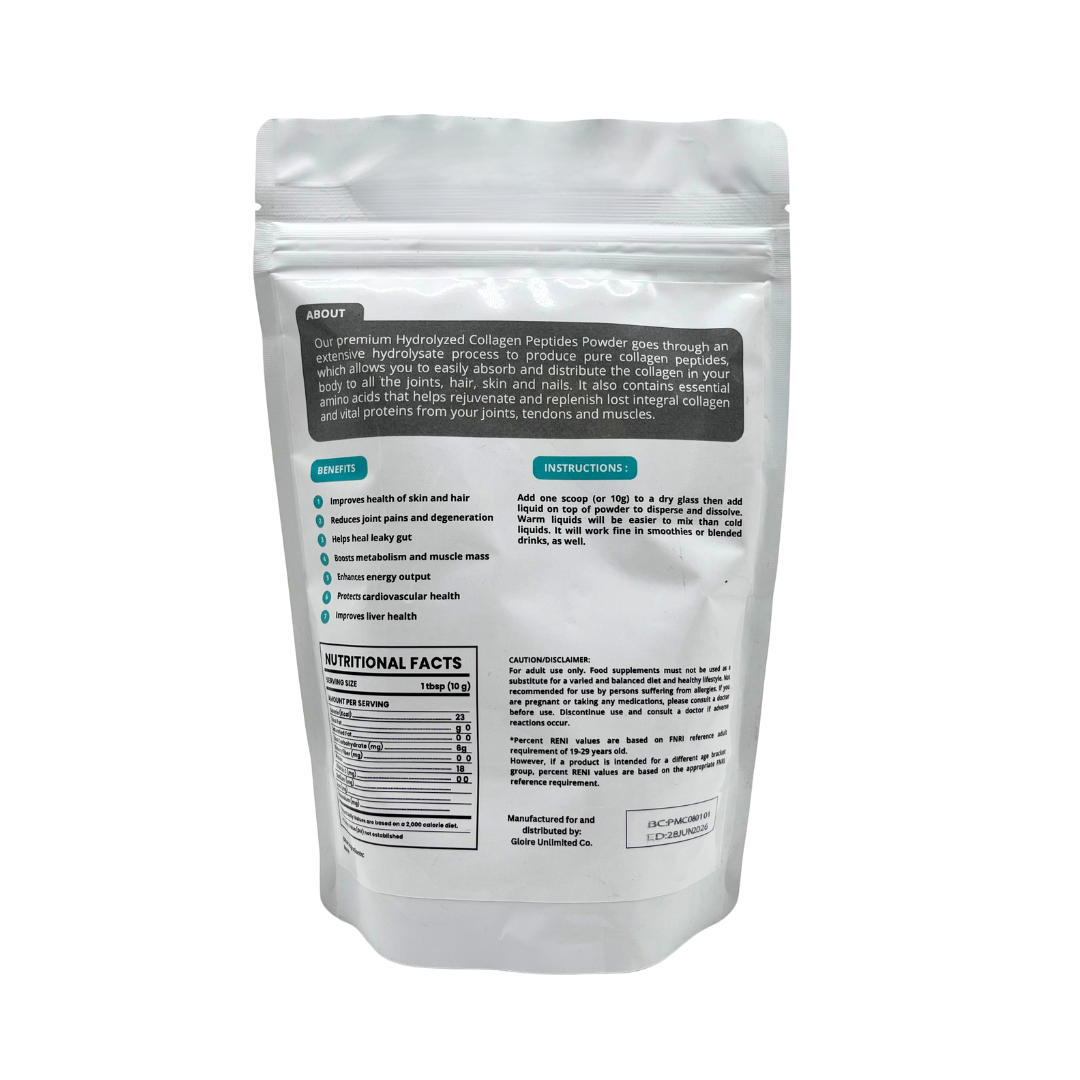 Ingredients: Grass-fed Bovine Hydrolyzed Collagen Powder