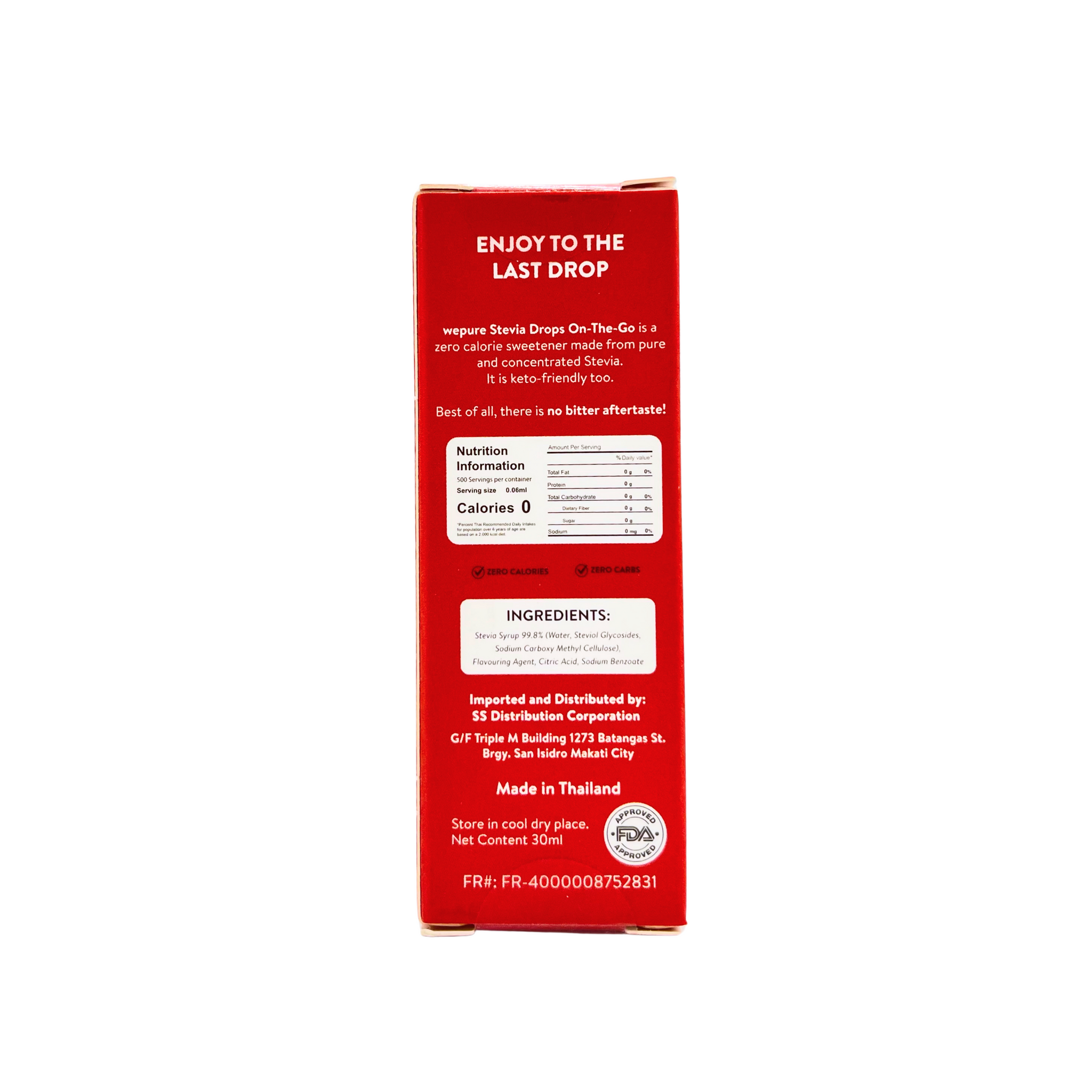 WePure’s Hazelnut Stevia Drops is your on-the-go zero calorie liquid stevia sweetener. It is keto and diabetic friendly, has no bitter aftertaste, and is FDA-Approved and SGS Nutrition Facts Tested. Best for hot or cold drink such as coffee and tea.
